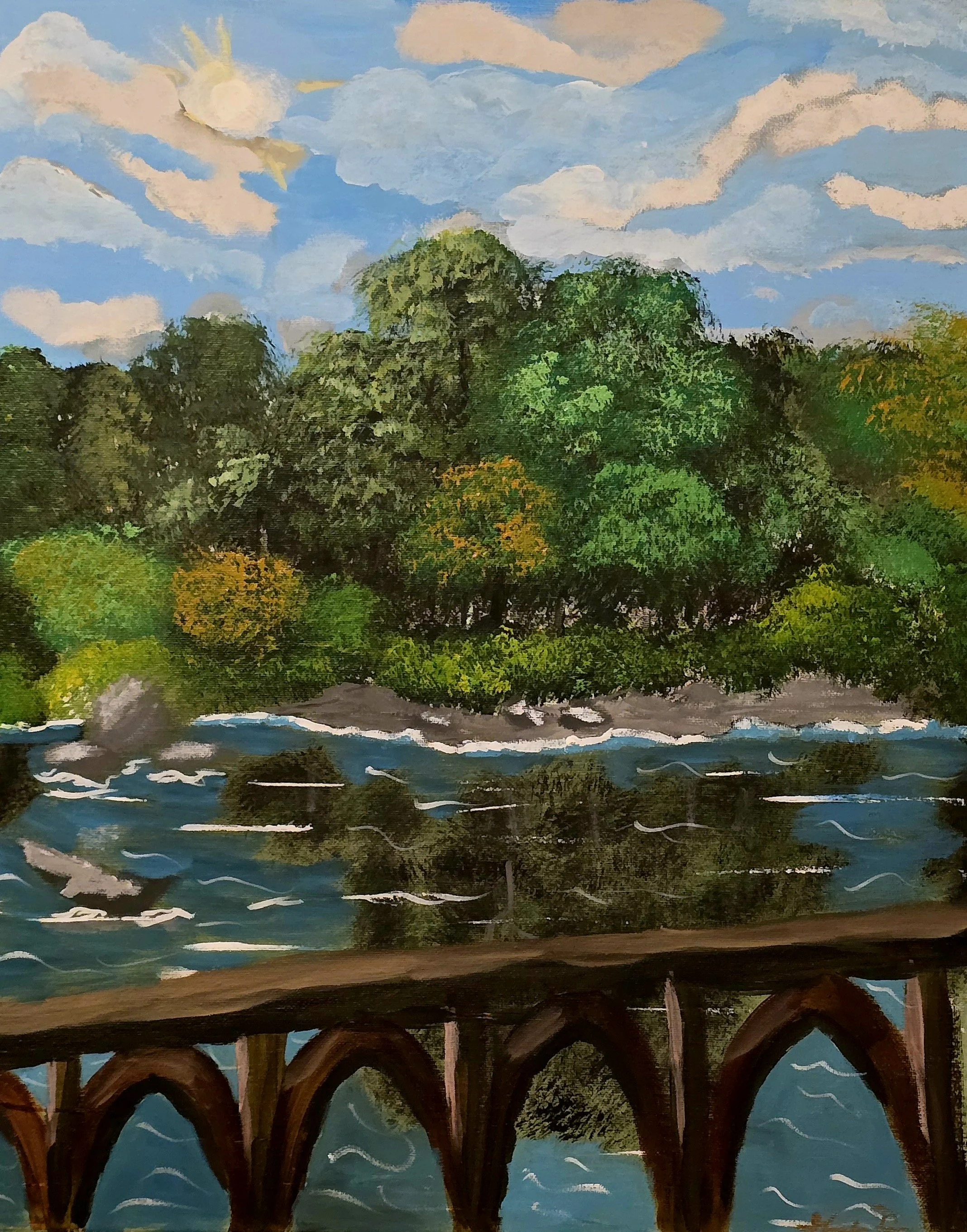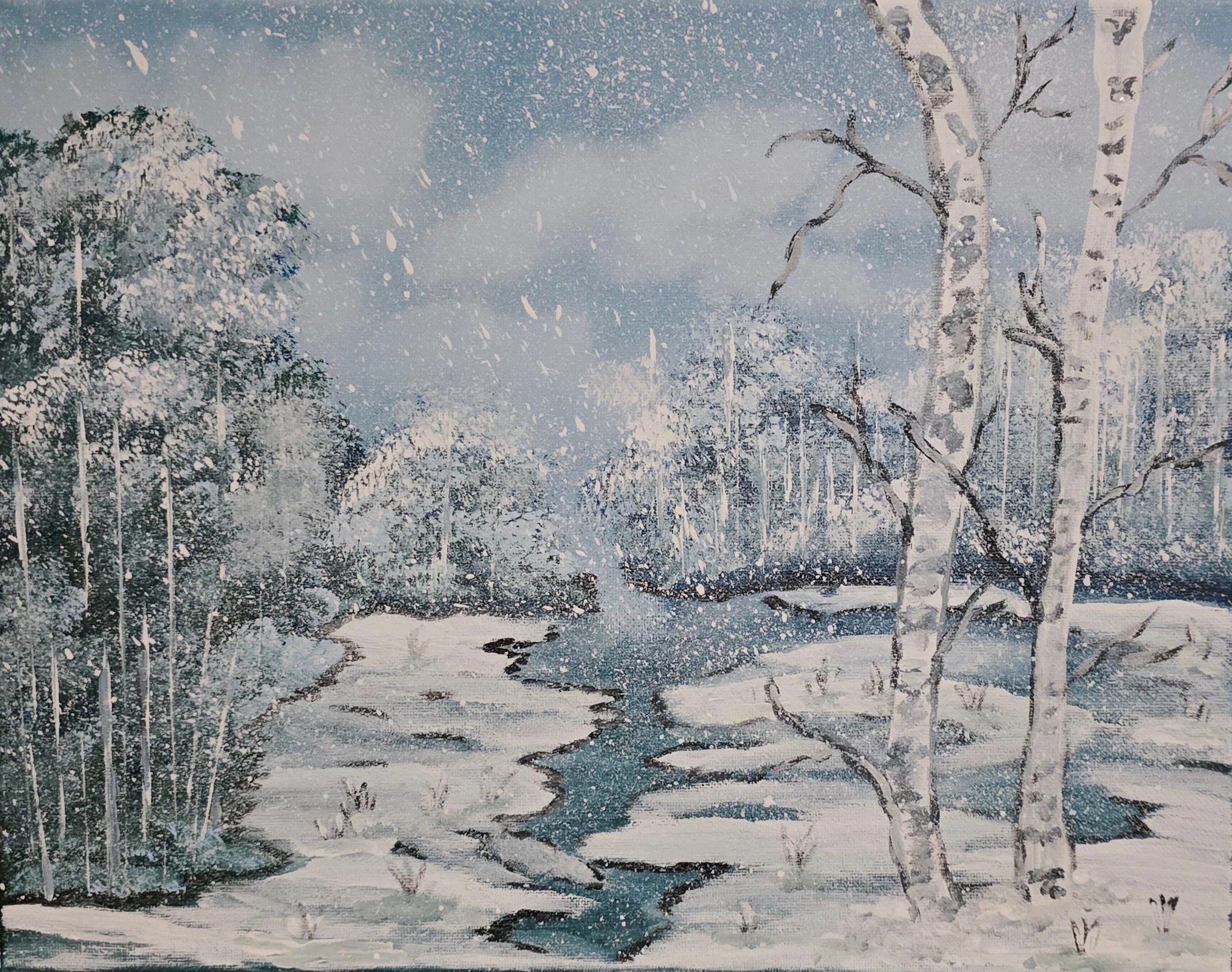 Through each brushstroke, I strive to echo his creativity, capturing serenity, contrast, grace, color, and light in every layer.
